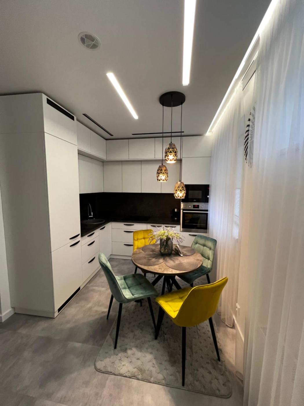One-Bedroom Apartment. Boasting a private entrance, this air-conditioned apartment includes 1 living room, 1 separate bedroom and 1 bathroom with a shower and a hairdryer. In the fully equipped kitchen, guests will find a stovetop, a refrigerator, kitchenware and an oven. The apartment offers a washing machine, a wardrobe, an electric kettle, a dressing room, as well as a flat-screen TV. The unit has 2 beds.